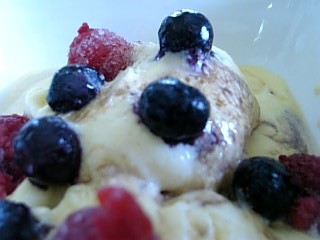 ラズベリーとブルーベリーを添えて